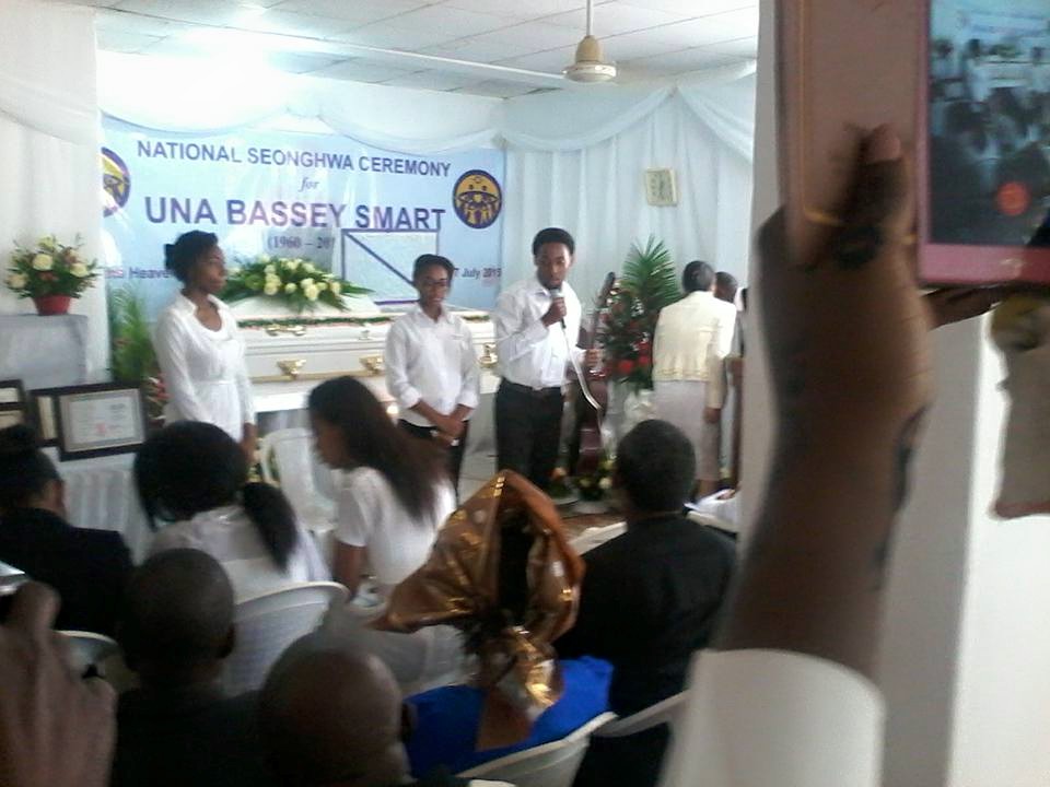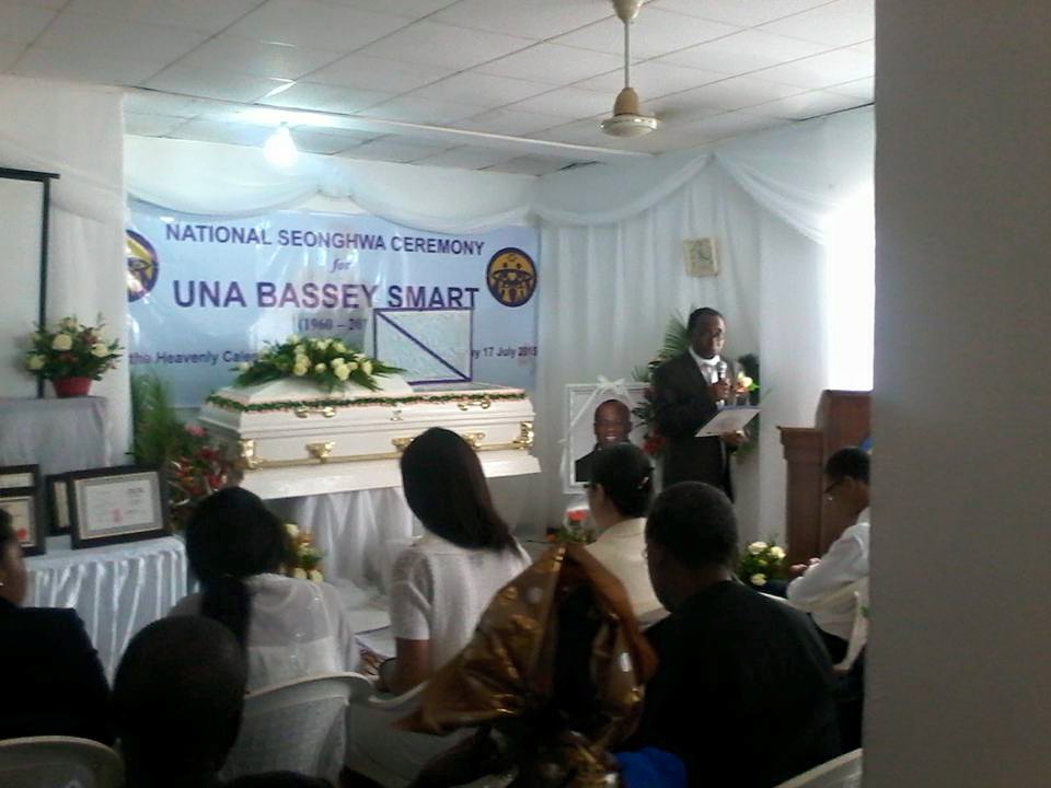 The ceremony continued with a musical number by a second generation trio in person’s of Godson J. Ogurie, Yeonhee Ogurie and Soona Ogurie which was followed by a reading of True Parents’ words and a Seonghwa address by the continental emisary of the movement, Rev. (Mrs.) Kathy Rigney. The family then proceeded to offer flowers and burn incense to pay their last respects to Rev. Smart followed by the entire congregation as music was played in the background during the process. After which the ceremony was concluded with a closing prayer by Mr. Guy Mamadu and the body was taken to the cemetery at Apo for the Won Jeon ceremony while the family as well as the guests and members proceeded right behind it. Rev. Una B. Smart ascended on the 25th of June, 2015 due to a severe asthma condition, He survived by his wife Mrs. Risa Smart and his 6 children Ami, Ahi, Ubong, Elizabeth, Isaac and Peter as well as his young brother Mr. Emmanuel Smart and nephew, Michael Smart.